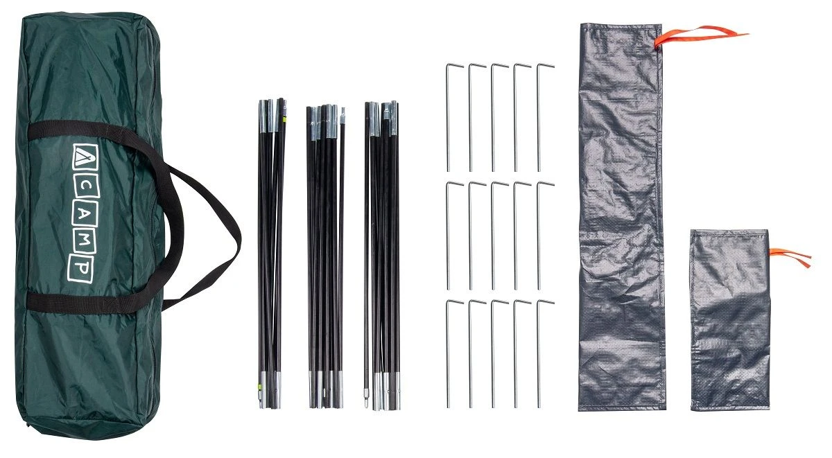 Deze tent is ideaal voor trekking, kamperen, wandelen en festivals dankzij de compacte pakafmetingen. De levering omvat een 4-persoons koepeltent van robuust polyester inclusief afspanmateriaal, glasvezelstokken, waterdichte opbergzak en haringen.