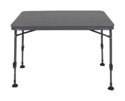 Dankzij het deelbare blad is deze ovale tafel in te klappen als koffer. De tafel is gemaakt van lichtgewicht aluminium met een MDF blad. Onder het tafelblad is een net bevestigd om spullen op te bergen.
