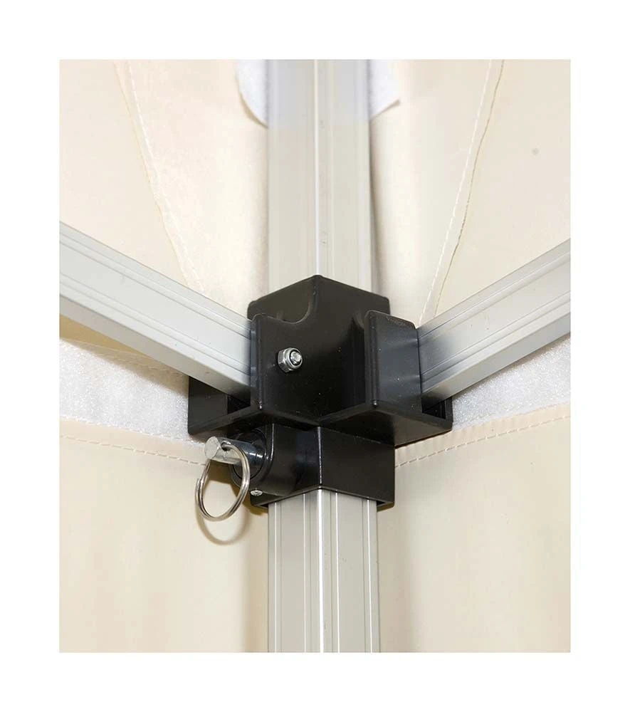 Een zeer stabiele en opvouwbare partytent. Deze partytent is zeer eenvoudig op te zetten en vervolgens weer in te klappen. Dit zonder dat het doek verwijderd dient te worden! Daarnaast is deze tent in hoogte verstelbaar tussen de 220 en 240 centimeter. Voorzien van een stevig en lichtgewicht aluminium frame en een 300 gr/m² polyester doek met waterdichte coating en getapete naden. De partytent is uit te breiden met diverse zijwanden. Afmetingen ingepakt (lxbxh): 25x27x159 cm. Afmetingen poten: 29×29 / 24×24 cm. Wanddikte poten: 1,7 mm. Afmetingen dakframe: 12×25 cm. Wanddikte dakframe: 1 mm.