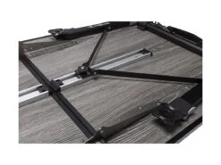Een extreem lichtgewicht maar zeer stabiele campingtafel met houtlook blad. De tafel heeft een glasfiber top welke hittebestendig en watervast is. Ook heeft de tafeltop een kunststof rand. Voorzien van een aluminium frame, in hoogte verstelbare poten (59-72 cm) en stabilisatoren zodat deze op iedere ondergrond stevig staan. Daarnaast zijn met de draaiknopjes in het verstelsysteem de poten stevig vast te zetten. Lichtgewicht dus ideaal om mee te nemen.