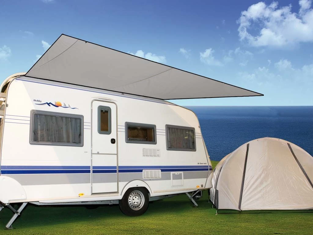 Ook als vrijstaande tarp te gebruiken doordat de Travel rondom voorzien is van zeilringen.