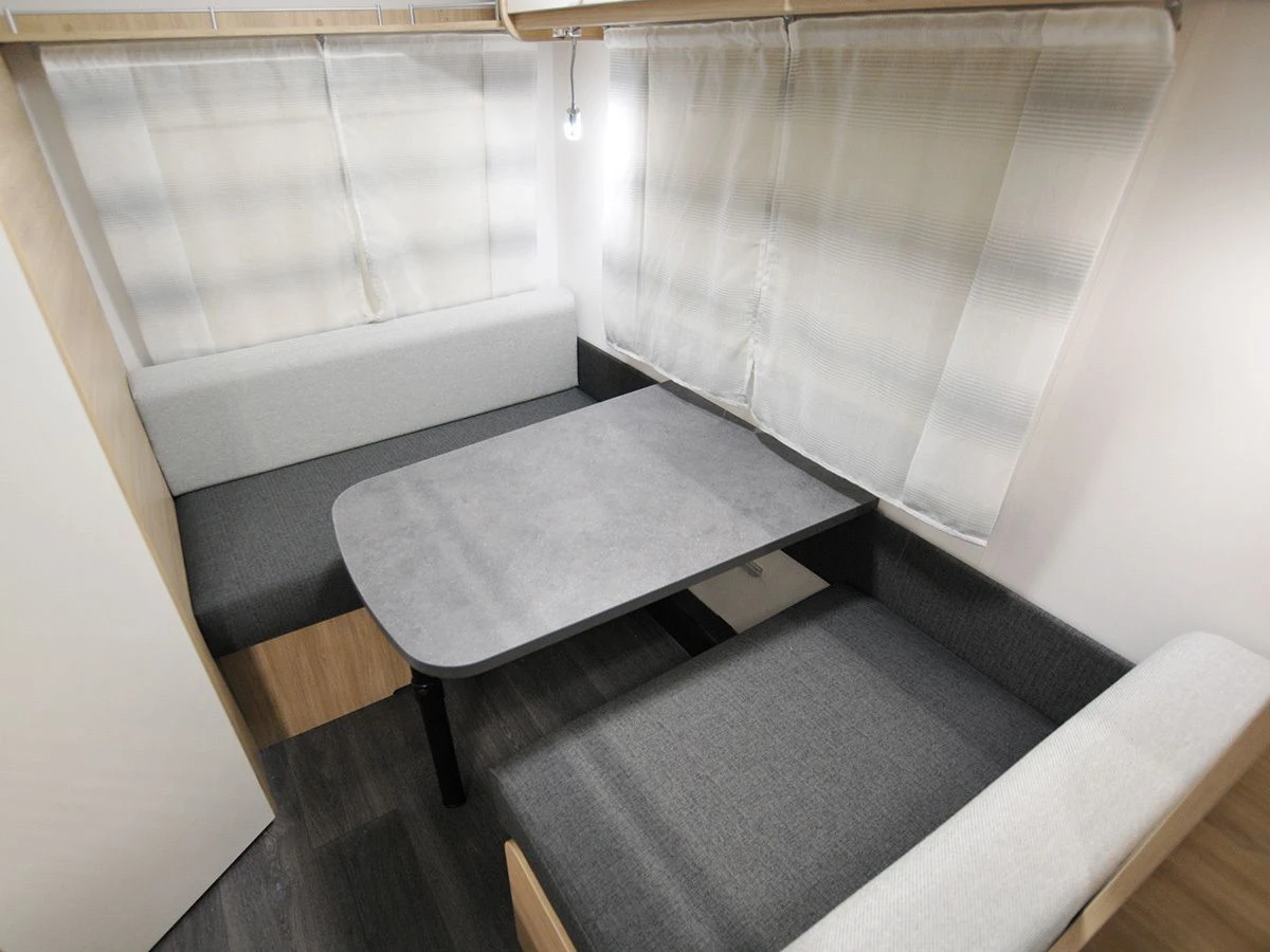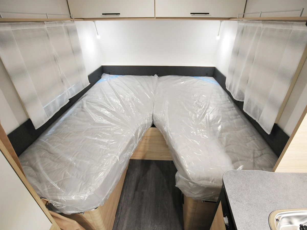| Caravan indeling | Achter toilet, Middenkeuken, Slaapbank, Treinzit, Vast bed, Aparte bedden, Hoek toilet, Lengtebed |