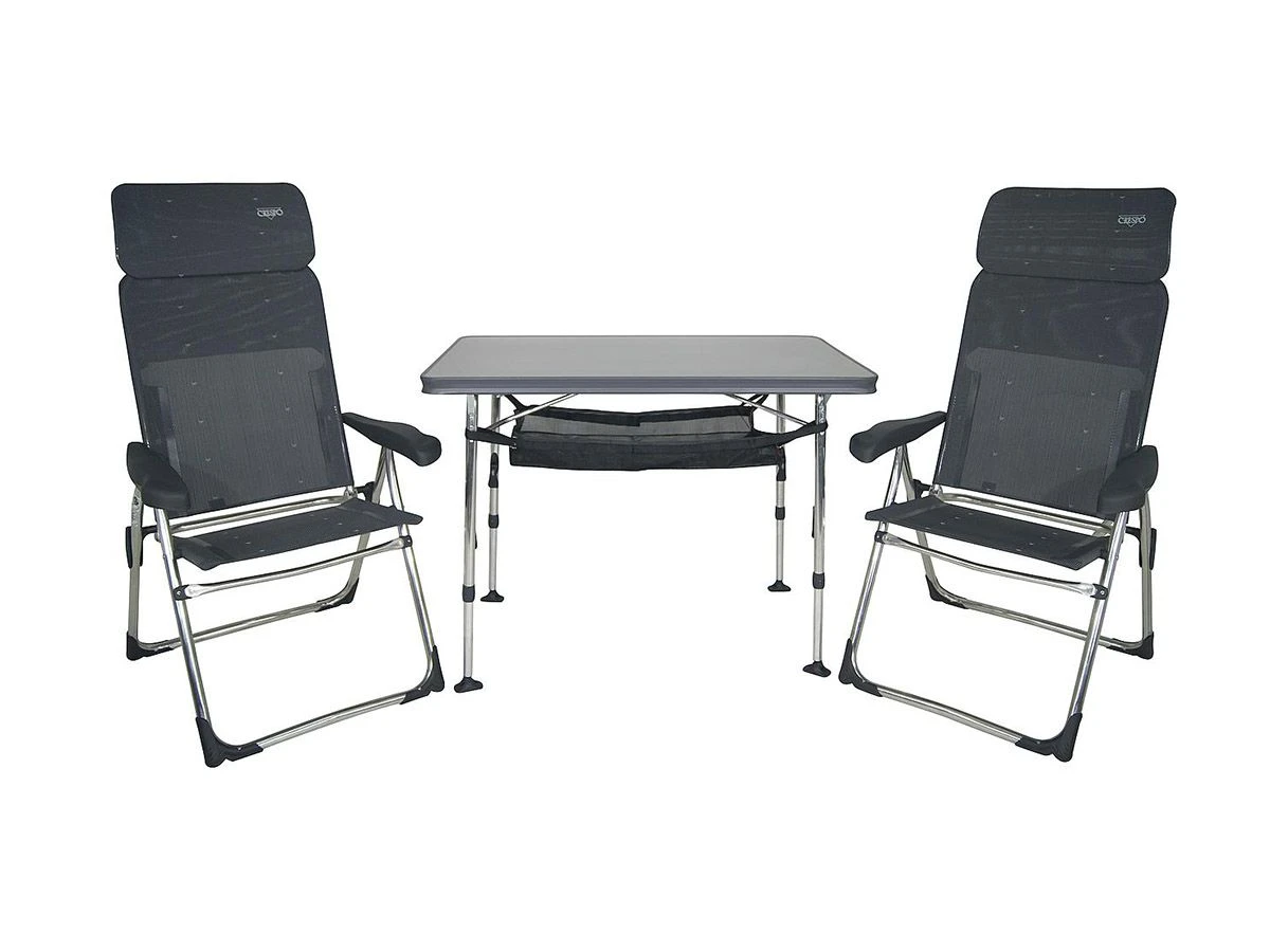 Een set bestaande uit 2 AL-213 Classic Compact stoelen, een tafel AL-246 met opbergnet en opberghoes.Zeer compacte en ideale set voor 2 personen. De set is zeer compact mee te nemen. Inclusief opberghoes.In totaliteit is de set compact opvouwbaar en maar 16 cm dik.