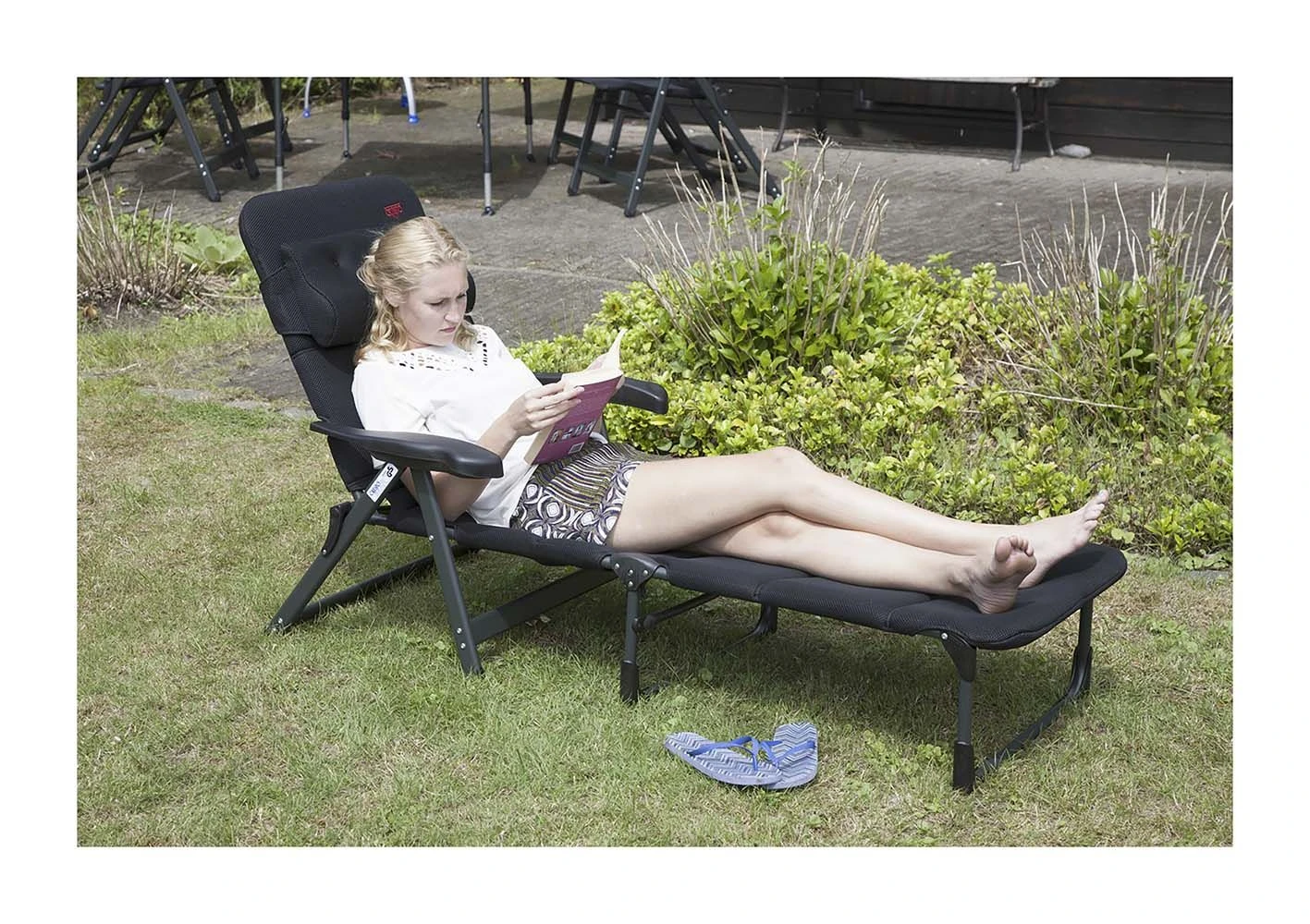 Een multifunctionele en uiterst comfortabele stoel. Deze stoel is door het unieke frame te gebruiken als ligstoel, om te zitten en als relaxstoel. Hierbij is de rugleuning verstelbaar in 7 standen. Deze stoel biedt maximaal comfort dankzij de gepolsterde 3D stof welke extra luchtdoorlatend is en geen vocht vasthoudt. Daarnaast beschikt deze stoel over een verstelbaar en zeer luxe hoofdkussen.