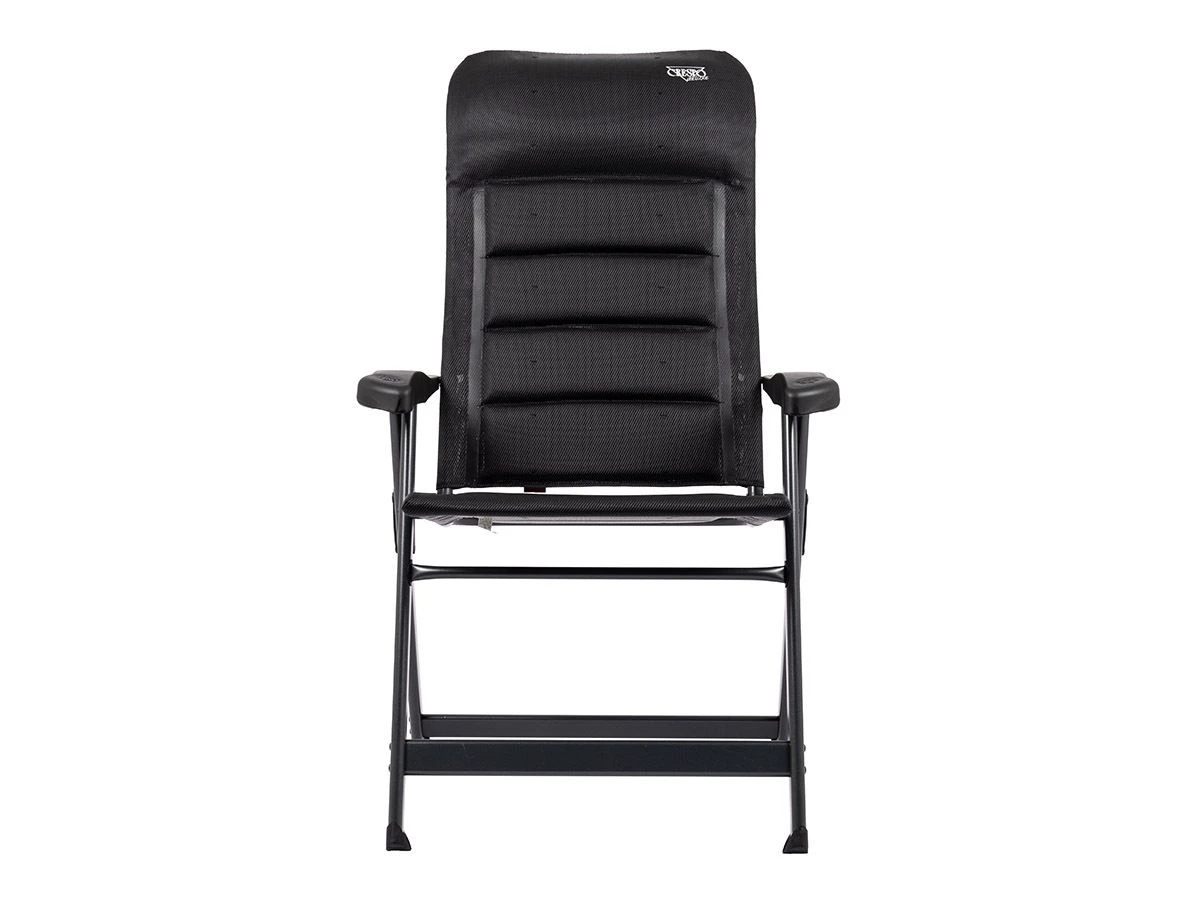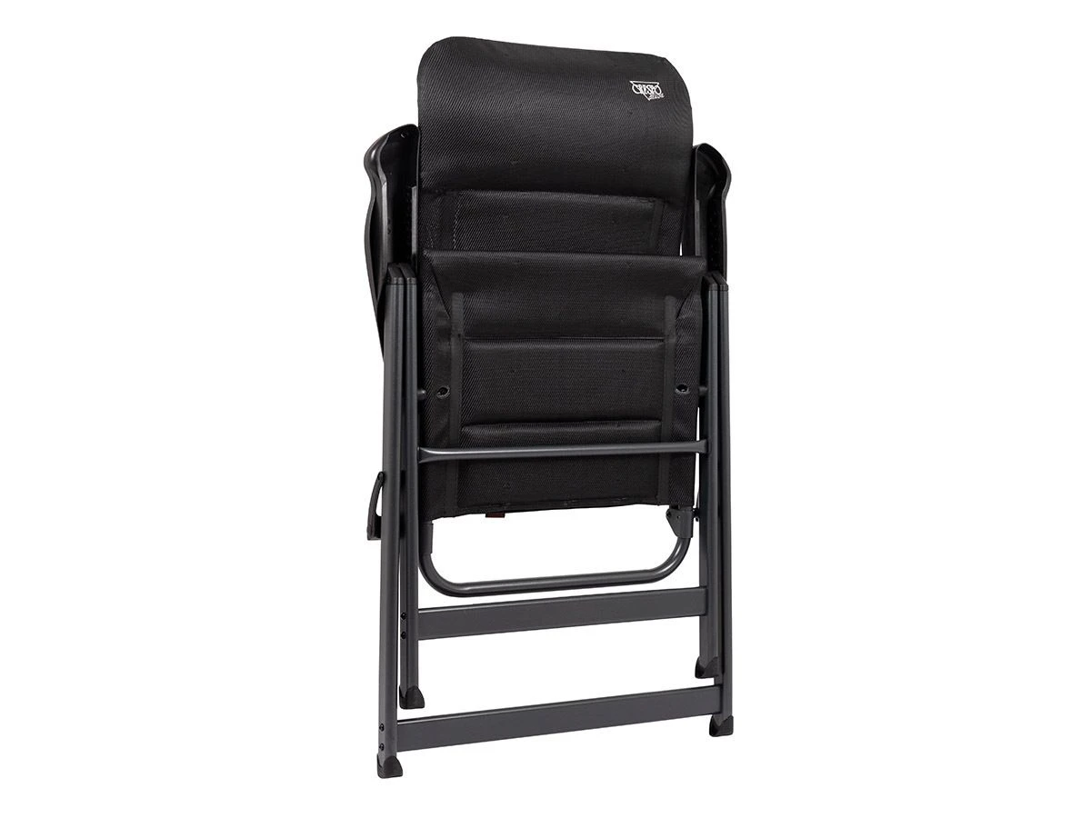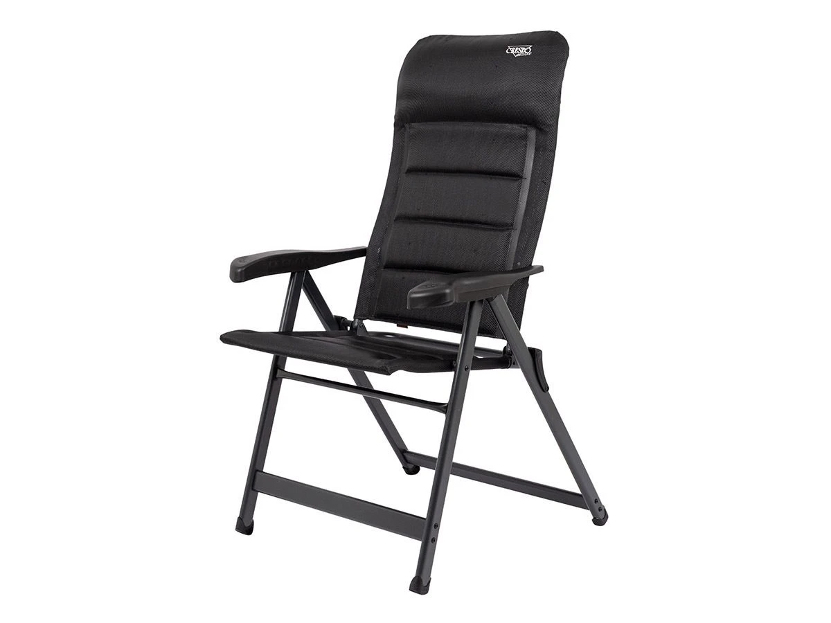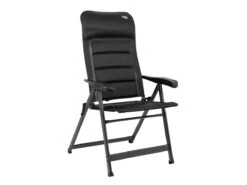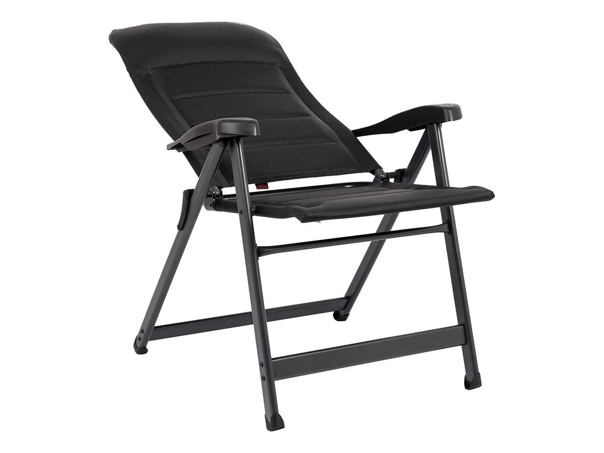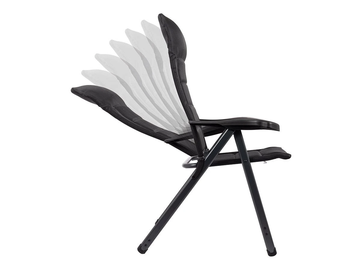 Op de camping wil je natuurlijk een stoel waarin je de hele dag comfortabel kunt zitten. De dag lekker beginnen met een ontbijt aan tafel, ’s middags ontspannen een boek lezen en ’s avonds na het eten heerlijk achteroverleunen om een dutje te doen. Dankzij de rugleuning, die in 7 standen verstelbaar is, kun je de hele dag op verschillende manieren comfortabel in de stoel zitten. De rugleuning en armleggers zijn ergonomisch gevormd, en de stoel is voorzien van een ingebouwd hoofdkussen voor optimaal comfort.