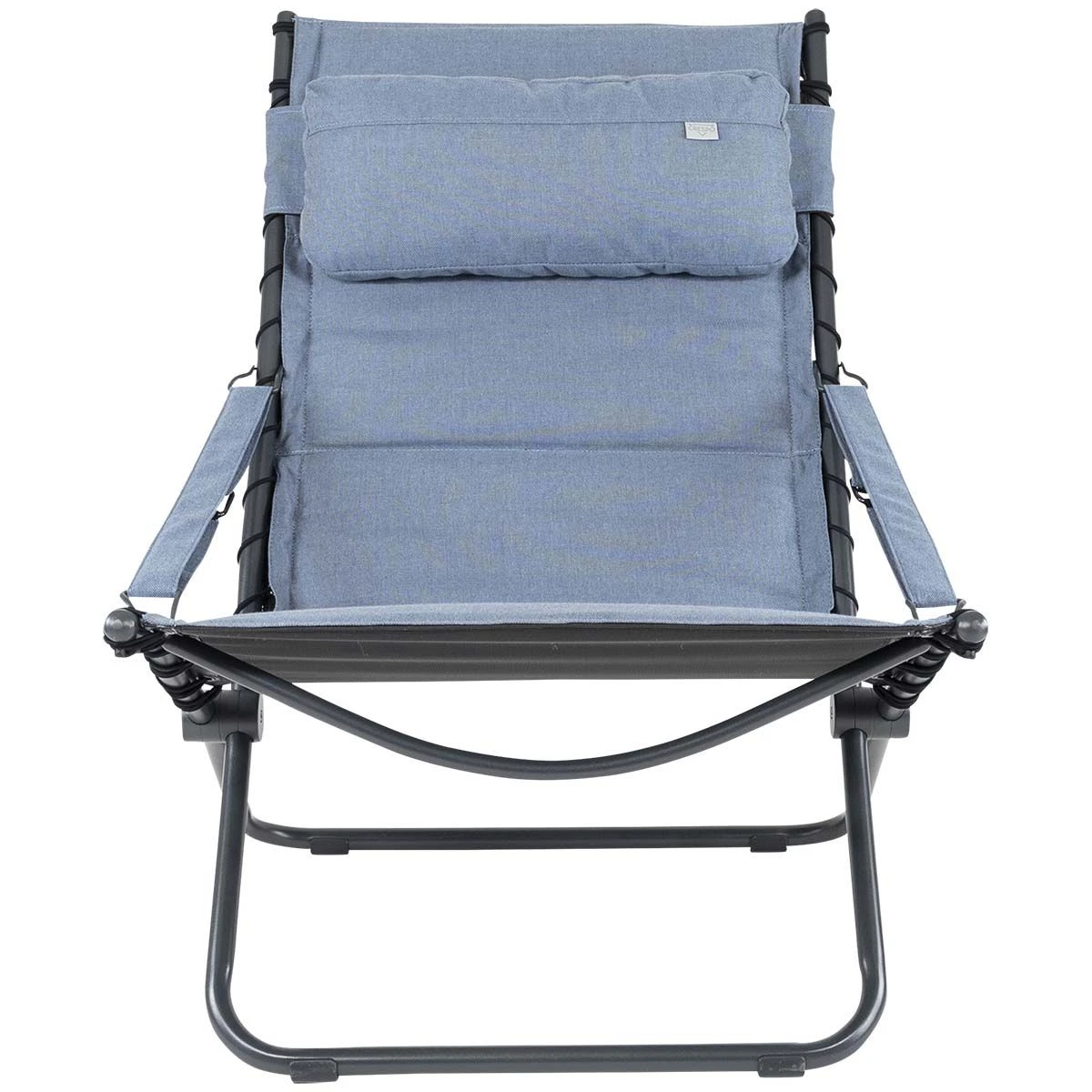 Een extreem luxe en comfortabele ligstoel. De ligstoel is in 4 posities verstelbaar voor een optimaal zitcomfort. Daarnaast zijn zowel de rugleuning als de armleggers ergonomisch gevormd en zijn de stoelen zeer plat opvouwbaar. De stoel is uitgerust met een aangename gepolsterde Tex-Comfort stof. Deze stof is zeer onderhoudsvriendelijk, waterafstotend door de open celstructuur en extra bestand tegen verkleuring door de zon. Deze gepolsterde stof in combinatie met de bevestiging door middel van elastieken zorgt voor een optimale zitervaring. Deze stoel is van hoogstaande kwaliteit en voldoet aan het TÜV keurmerk. Deze ligstoel is ideaal voor in de tuin of op de camping.