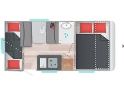 De Apero 465 SFB is voorzien van een rondzit, middenkeuken, hoektoilet en een Frans bed.