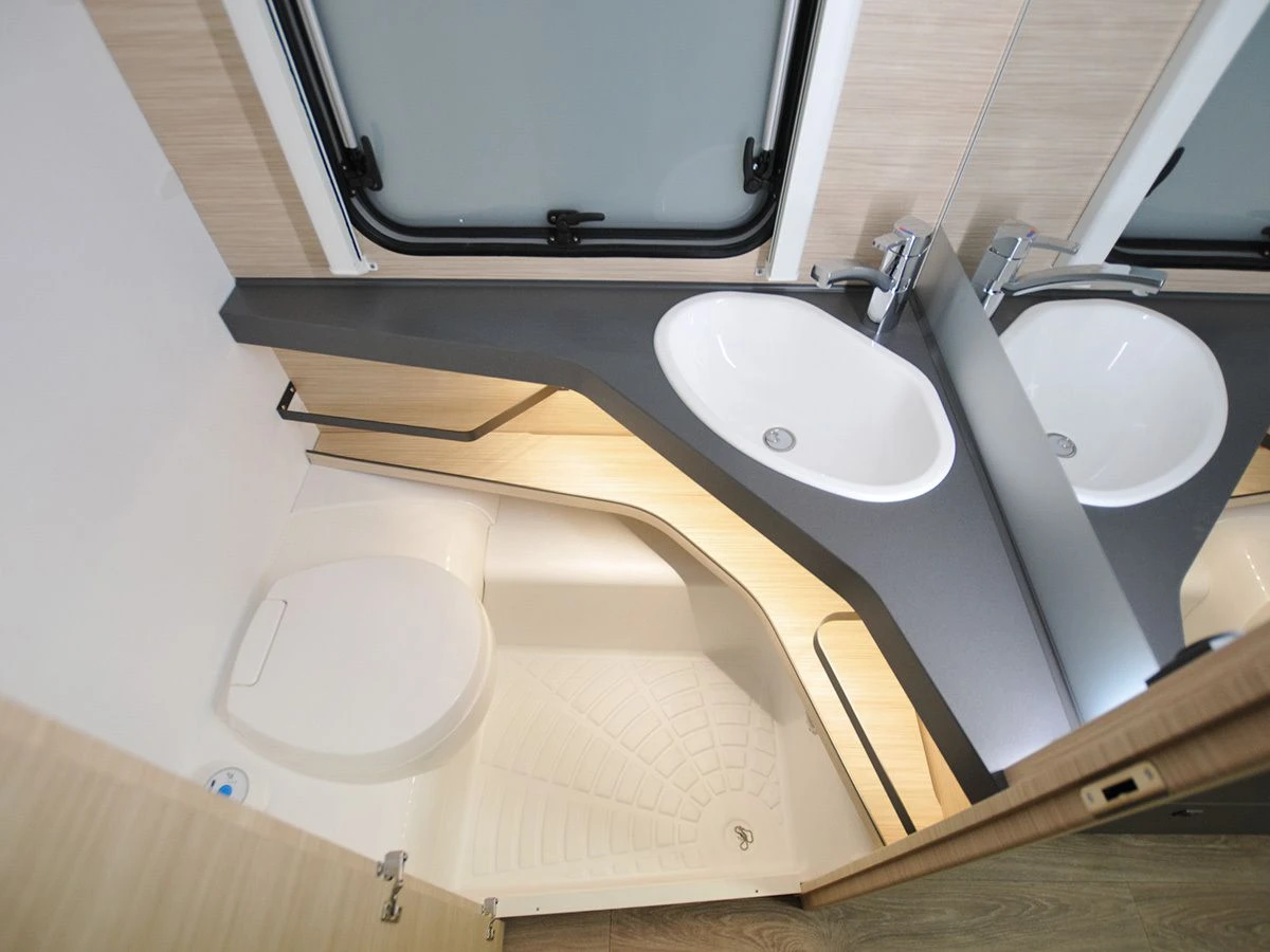 De Apero 495 SG is voorzien van een treinzit, middenkeuken, middentoilet en twee aparte bedden.