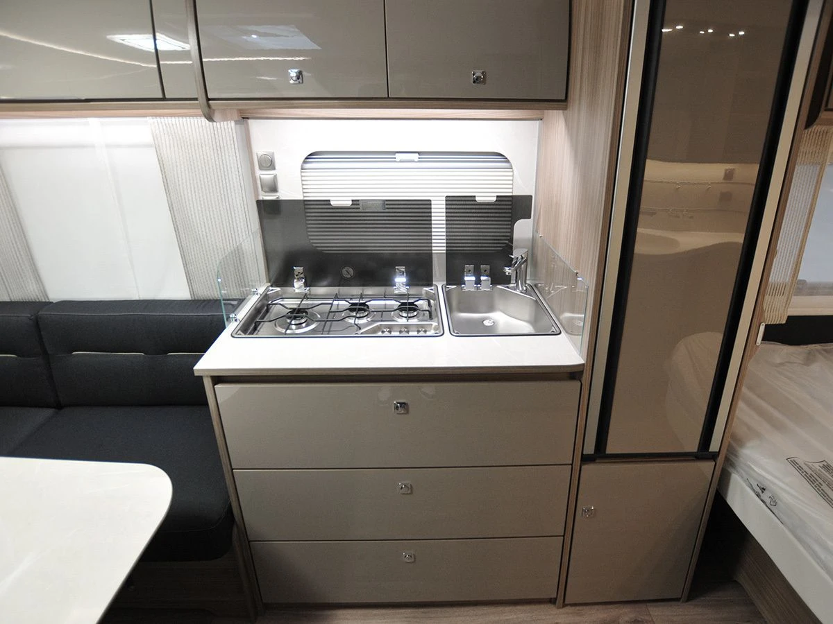 De caravan is bij ons al, af fabriek voorzien van een 1700 kg as, tv-beugel en een Combi 4E boiler.