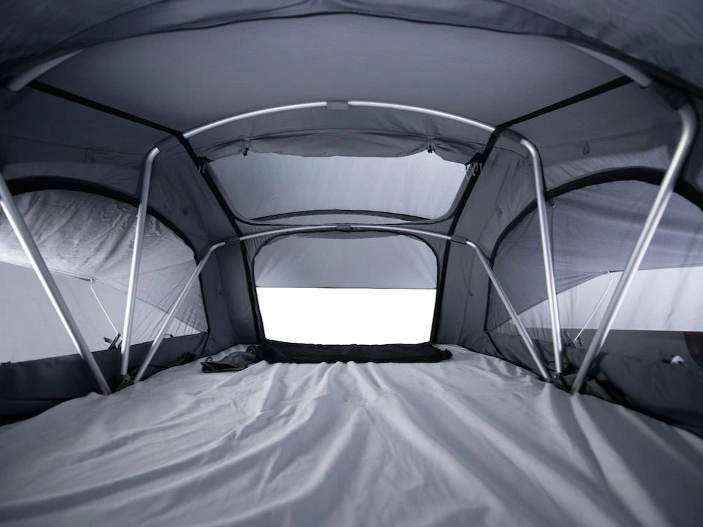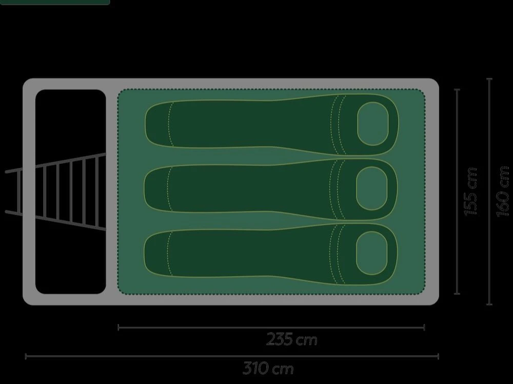 De Villmark 160 softtop daktent is de ideale oplossing voor liefhebbers van het buitenleven die spontaan en toch comfortabel willen reizen. Met een ligvlak van 155 x 235 cm biedt de Groenberg Villmark 160 voldoende ruimte voor 3 volwassenen. De autodaktent is gemaakt van een duurzame, waterdichte katoenmix (65% polyester, 35% katoen) die bestand is tegen weer en wind. De speciale constructie zorgt voor een tegen regen beschermde ingang. De afneembare luifel is gemaakt van gerecycled polyester. Het biedt extra bescherming tegen regen en UV-straling. Bij mooi weer opent het panoramische dakraam een hemels uitzicht. De 8 cm hoge matras zorgt voor een hoog slaapcomfort. De afneembare matrashoes is ongeverfd en machinewasbaar. Andere kenmerken zijn twee schoenenopbergers, een opbergnet en een telescopische ladder. De materialen die in alle Groenberg daktenten worden gebruikt, zijn PFC-vrij. Met de bijpassende cabine (Annex) in de maten S, M en L kan de Villmark 160 naar wens worden uitgebreid.
