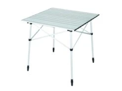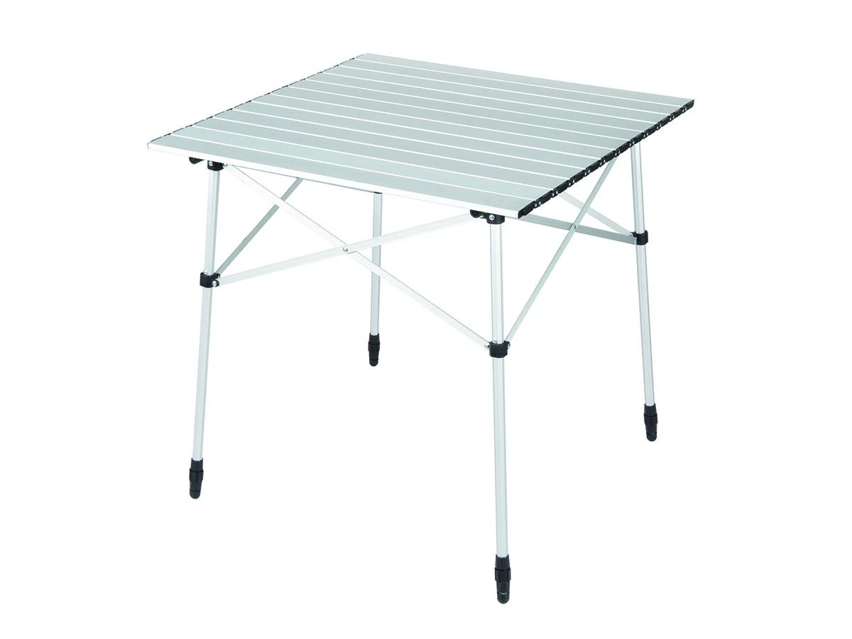 Camping tafel Sevilla. Deze lichtgewicht Aluminium campingtafel heeft een oprolbaar tafelblad en 4 telescopische poten die in de hoogte verstelbaar zijn en aldus de oneffenheden van het terrein compenseren. Eenvoudige montage en zeer kleine pakmaat! Verpakt in handige draagtas.