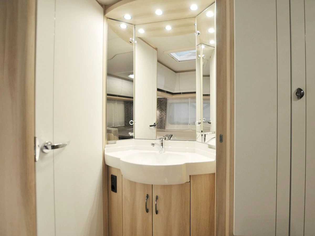 De caravan is bij ons al, af fabriek, voorzien van een TV-beugel.