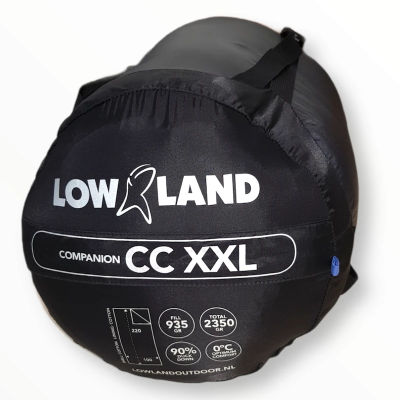 De LOWLAND OUTDOOR® Companion CC XXL houdt je lekker warm tot ongeveer het vriespunt. Deze slaapzak wordt gevuld in ons eigen atelier te Maarsbergen.