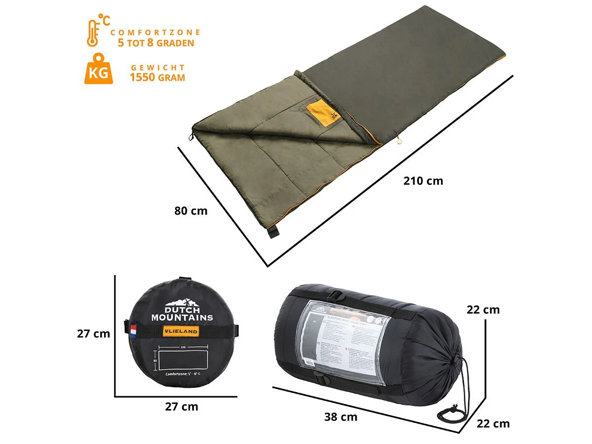 Natuurlijk is de ‘Vlieland’ geen slaapzak om met -5 graden in een tent te slapen. Een logeerpartij? Festival? Of misschien een frisse kampeersessie in het voorjaar? Geen punt. De ‘Vlieland’ is in vrijwel alle frisse omstandigheden je warme maatje en in de warmte juist koel door de gebruikte katoenen materialen.