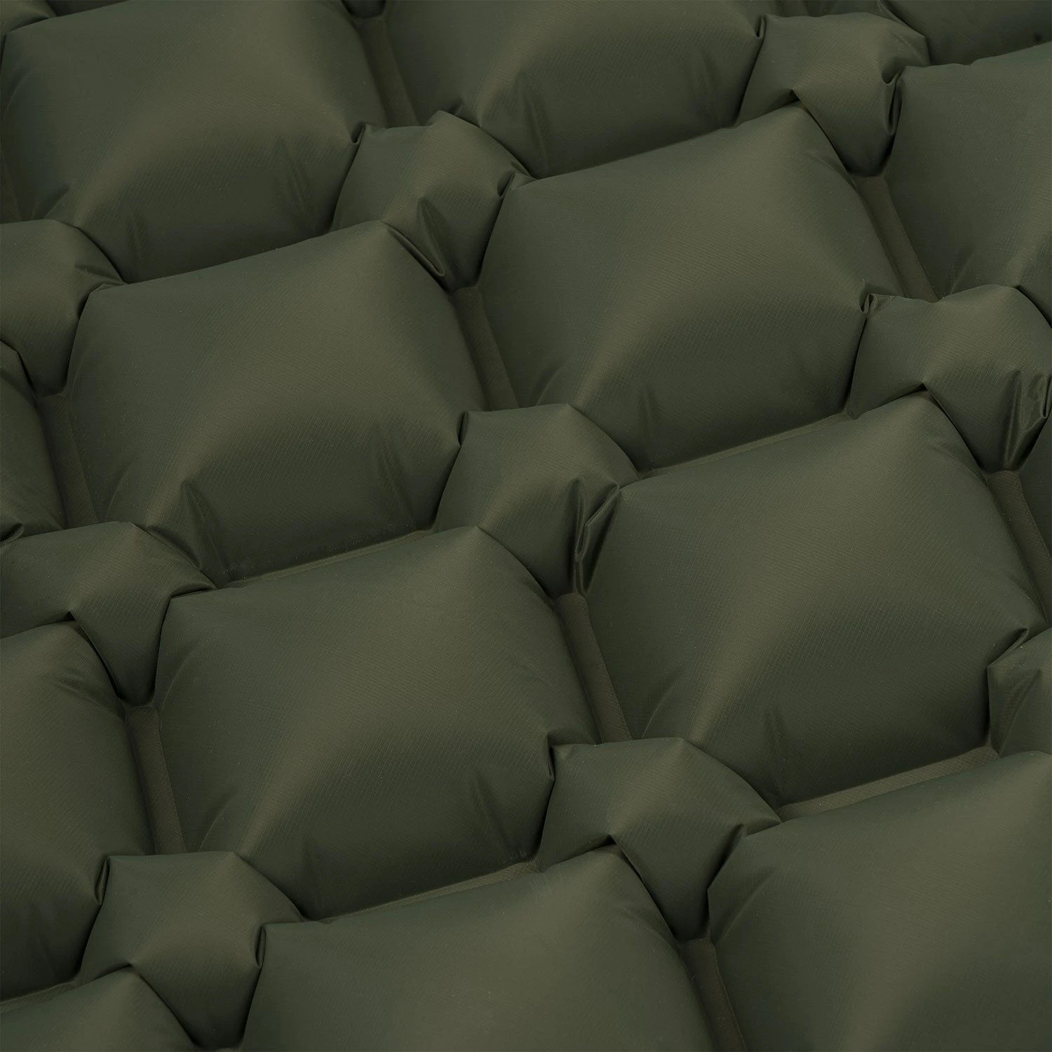 De Highlander opblaasbare slaapmat Nap-Pak XL – R-waarde 1,5 – Groen zorgt er tijdens het slapen voor dat je niet alle warmte van je lichaam verlies aan de koude ondergrond. Met deze NAP-PAK XL geniet je van een heerlijke nacht slaap op een net iets bredere slaapmat. Deze compacte en kleine mat is met zijn kleine volume, duurzaam gemaakt van ripstop nylin en ultralicht zonder in te leveren op het comfort. Een heerlijke slaapmat die je compact kan opbergen waardoor hij goed is te gebruiken tijdens trektochten en kamperen.