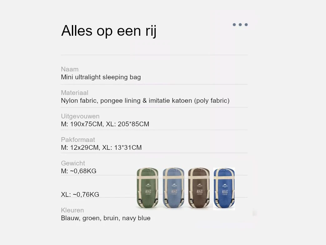 Let op: wij adviseren om een slaapzak te kiezen die 10-20cm langer is dan je eigen lichaamslengte!