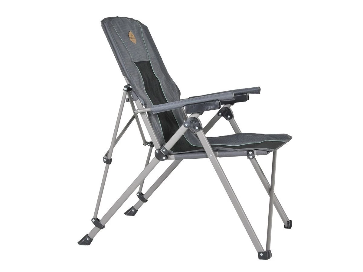 Het frame van de stoel is gemaakt van staal met daarop een stevige polyester zitting. Voor extra gemak zijn de armleuningen voorzien van zachte bekleding. De stoel kan tot maximaal 120 kg dragen en wordt geleverd met een handige draagtas voor eenvoudig transport.