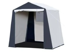Het PVC doek is erg stevig en heeft een lange levensduur. Dankzij dit kwalitatief hoogwaardige doek is de keukentent ook voor langdurig gebruik geschikt, bijvoorbeeld op een seizoensplaats. Het doek is weerbestendig en afwasbaar.