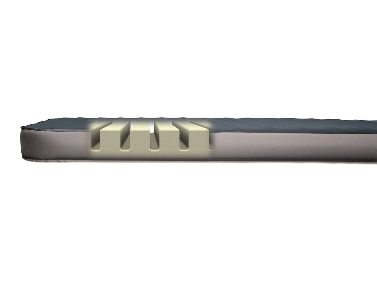De Dreamboat biedt optimaal slaapcomfort aan twee personen en is zeer compact op te rollen dankzij de extra grote horizontale luchtkanalen in de foam vulling. Naast dat deze banen ervoor zorgen dat de slaapmat opgerold een stuk compacter is geeft het ook een fijne ventilatie. Een positief punt als je tijdens een warme zomer gaat kamperen!