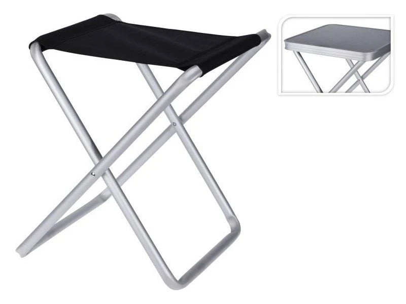De viskruk is gemakkelijk plat te klappen en neemt daardoor weinig opbergruimte in beslag. Het aluminium frame is uitgerust met een stevige polyester zitting. Het oplegblad is gemaakt van MDF en heeft een aluminium rand voor extra stevigheid.
