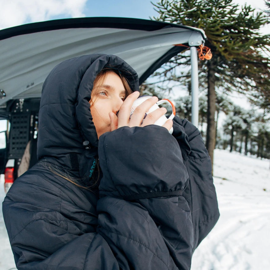Deze gerecyclede versie van de originele Selk’bag is volledig gemaakt van gerecyclede materialen; sterker nog, hij is gemaakt van 230 plastic flessen. De duurzame constructie en isolatie houden je warm bij temperaturen zo laag als 2°C, waardoor je zelfs bij koud weer comfortabel blijft.