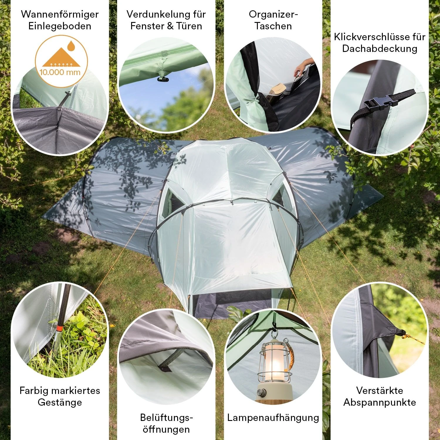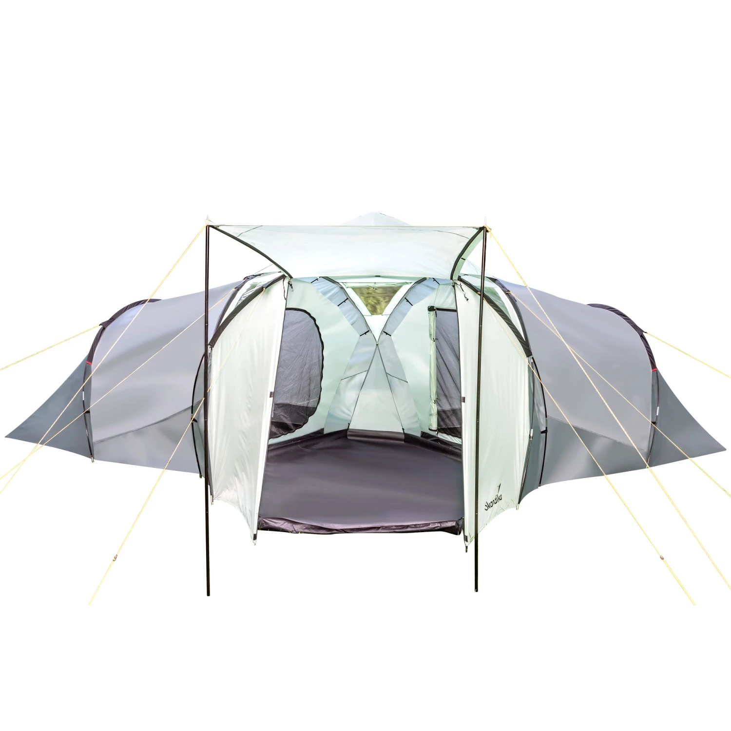 Voor families en vrienden die op zoek zijn naar een frisse, lichte tent, is de Skandika Bern 4 de perfecte keuze. Met zijn opvallend mooie panoramische dakconstructie en zijn eenvoudige kleurencombinatie van grijstinten brengt de compacte koepeltent een zekere flair en slaat hij een goed figuur op de camping of op een festival.