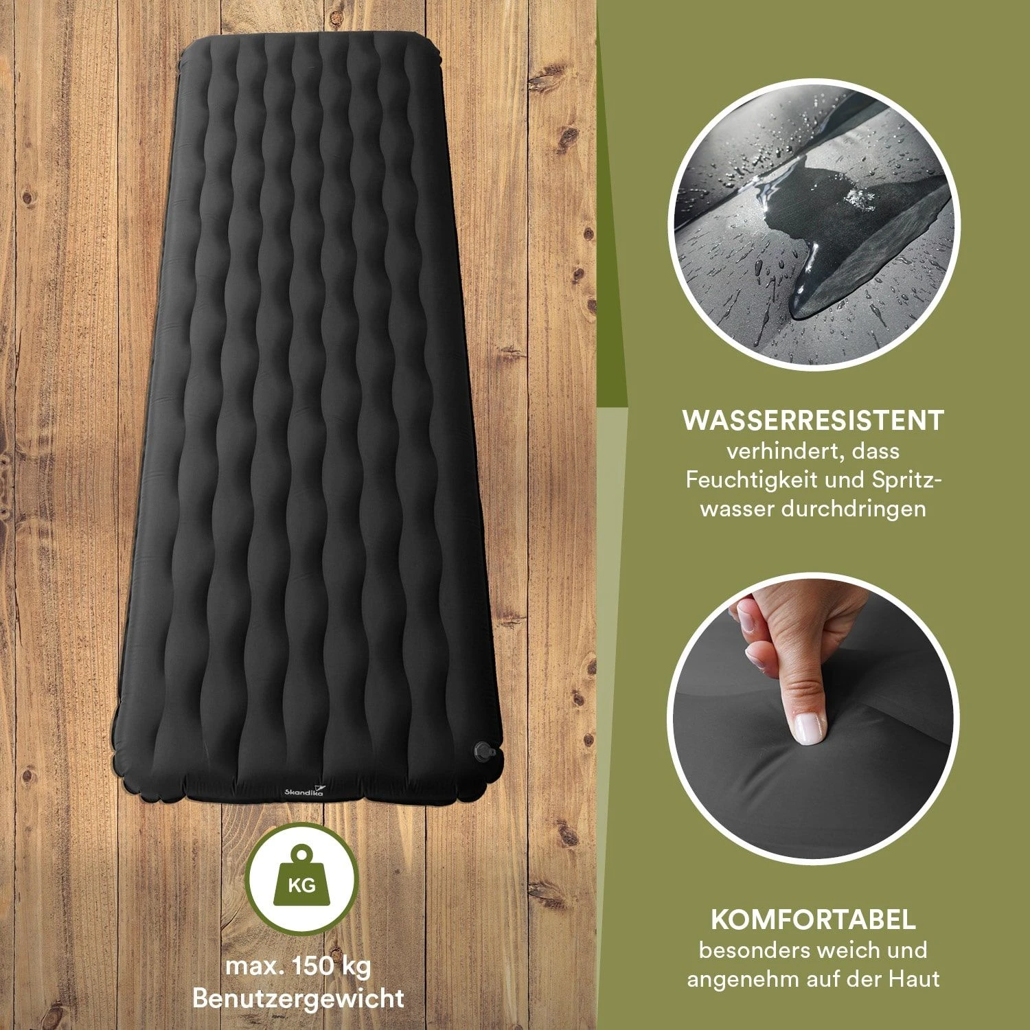 Een rustige en vooral comfortabele nachtrust is belangrijk om positieve herinneringen op te halen aan avonturen in de buitenlucht! Het vinden van een evenwicht tussen het verlangen naar comfort en het verlangen naar een laag gewicht en een kleine pakmaat is echter niet zo eenvoudig…. Met de slaapmatten van de Skandika Air serie hebben we dat probleem slim opgelost! De opblaasbare matrassen zijn niet alleen uiterst comfortabel, maar hebben ook een zeer kleine pakmaat en zijn superlicht.