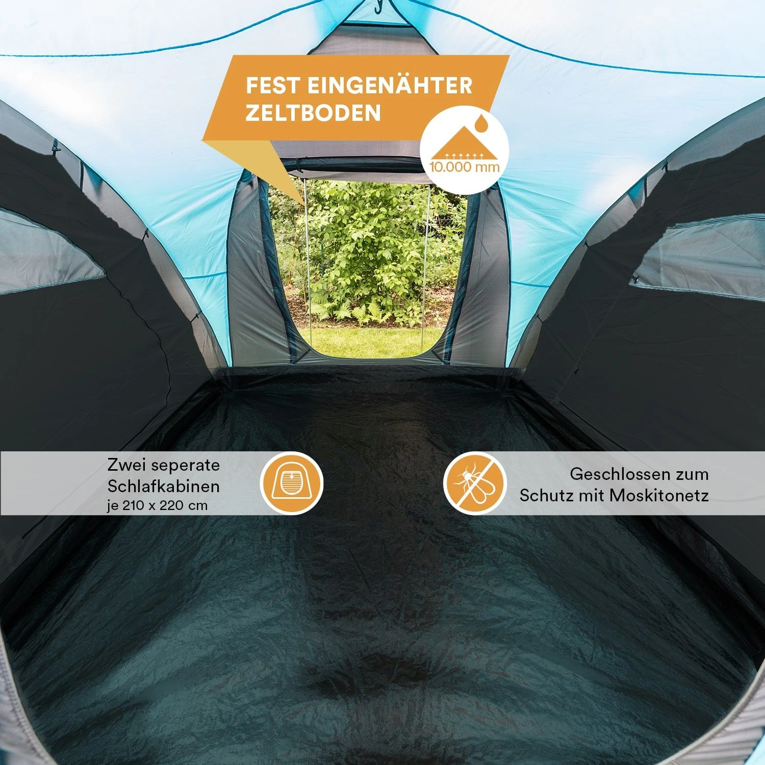 De tent heeft een stevig ingenaaide vloer en de ingangen en slaapcabines zijn voorzien van muskietengaas. Dit houdt vervelende insecten buiten en de binnenkant wordt beschermd tegen vocht en tocht.