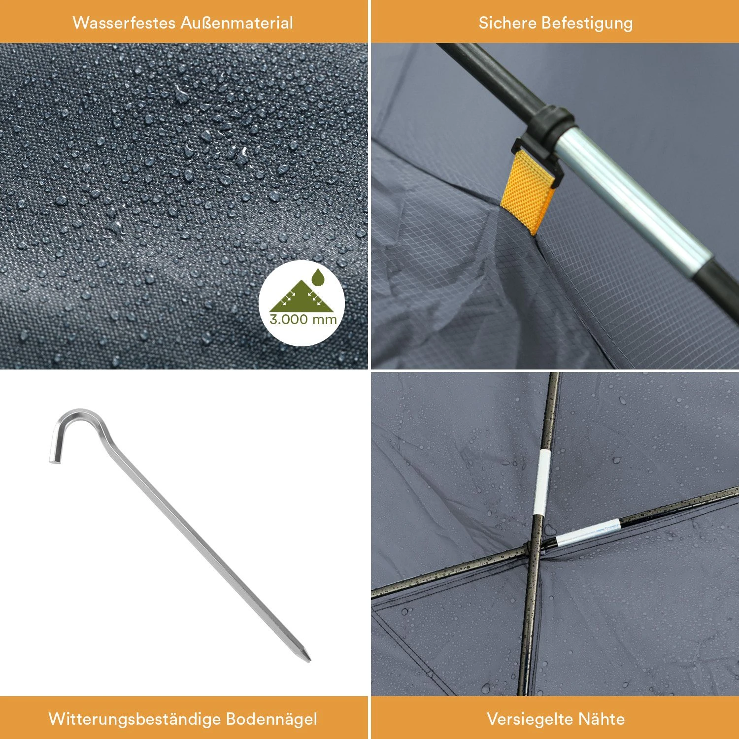 Ondanks het grote oppervlak en de vele gebruiksmogelijkheden is de zonneluifel compact, weegt slechts 6 kg en heeft een pakmaat van 64 x 16 x 16 cm, zodat hij overal mee naartoe kan worden genomen. In de robuuste draagtas is het zeil gemakkelijk te vervoeren en alle afzonderlijke onderdelen zijn veilig opgeborgen en blijven beschermd tegen stof en vuil.