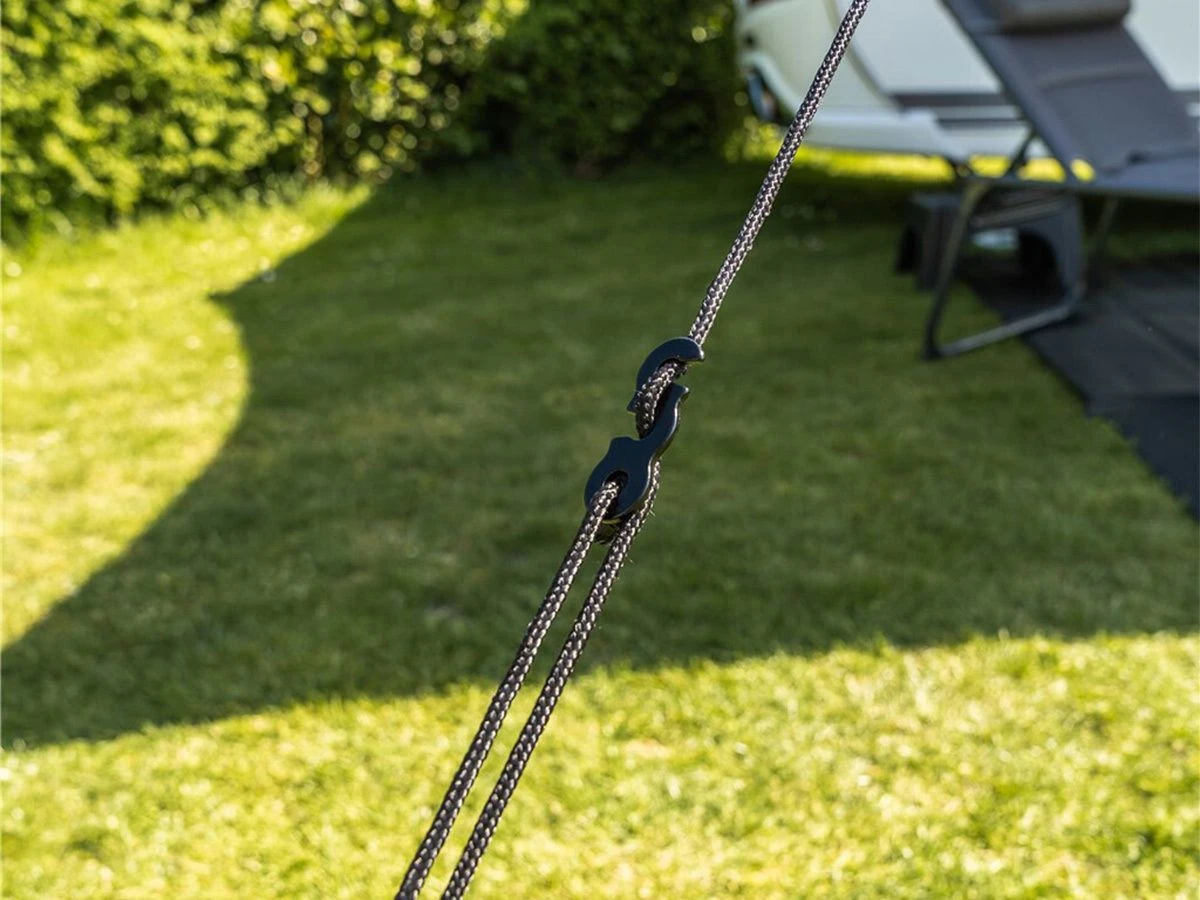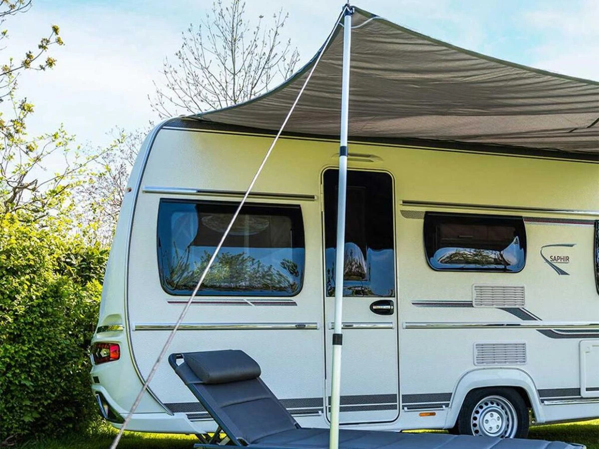 De luifel heeft LED-lampjes langs de randen, waardoor hij er een stuk gezelliger uitziet. Je bevestigt het schaduwdoek gemakkelijk aan de caravan, en met de meegeleverde accessoires zet je de luifel snel en eenvoudig op.