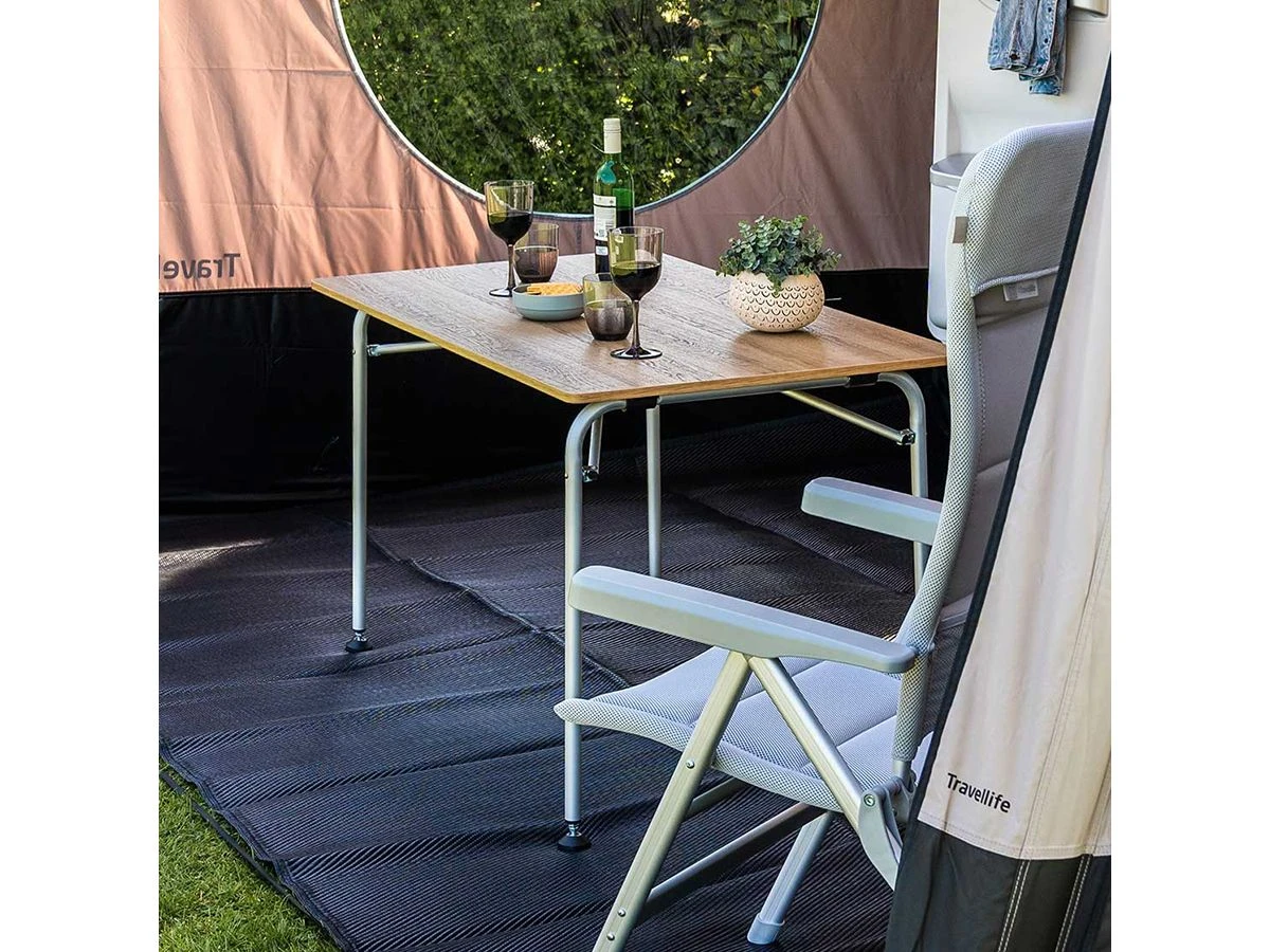 Samen tafelen en genieten van het buitenleven op de camping kan met de Sorrento tafel. Het elegante tafelblad heeft de looks van een mooi binnen interieur, maar met de voordelen van een buitentafel. Het blad is namelijk kras- en hittebestendig tot 120°C. Daarbij is het blad ook nog een water- en uv-bestendig. Hij kan dus gewoon in de buitenlucht blijven staan! Is er wat vuil op gekomen? Reinig de tafel eenvoudig met wat water en een doek. Deze tafel is een echte must voor je volgende kampeertrip!