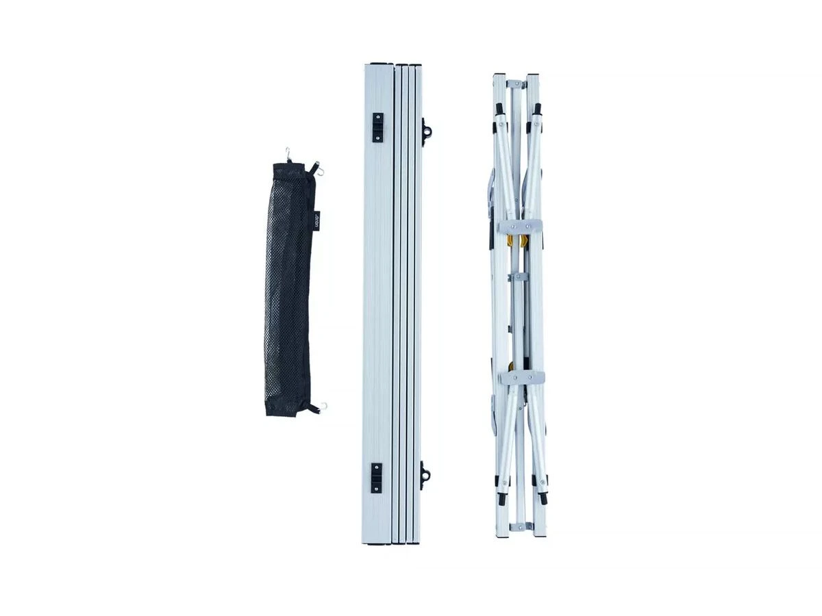 VARIETY is een praktische klaptafel met een kleine pakmaat. Het inklapbare tafelblad is eenvoudig schoon te maken en de poten zijn traploos in hoogte verstelbaar. Een net zorgt voor extra opbergruimte. Het hoogwaardige aluminium zorgt voor een hoog draagvermogen van 30 kg en een bijzonder stabiele stand op oneffen oppervlakken.