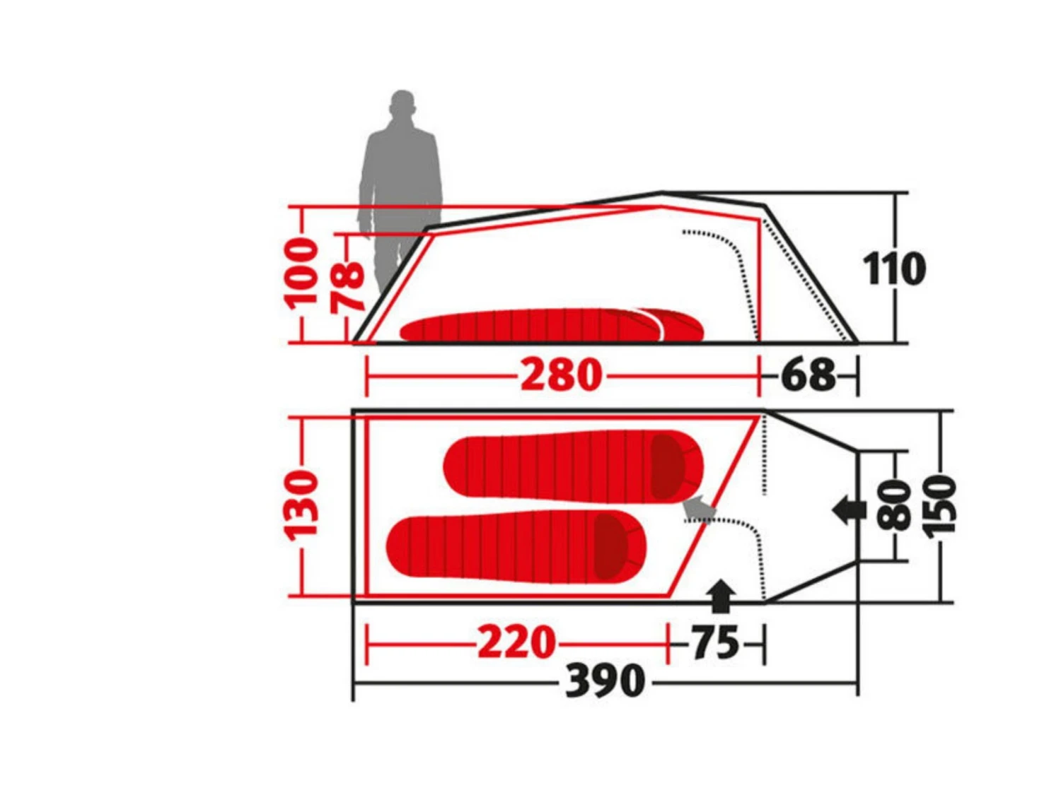 De Tempest 2 is een tent voor twee personen met grote, regenbestendige ingangen en een voortent. Het heeft drie doorlopende, vlakke externe kanalen. Deze zijn gemakkelijk te hanteren, bieden weinig luchtweerstand en minimaliseren daardoor windgeruis. Door de bijzondere, steile vorm van de luifel kunt u er comfortabel onder zitten en optimaal gebruik maken van de ruimte. De binnentent kan, wanneer deze is opgezet, in of uit de tent worden gehangen. De D-vormige ingang van de binnentent is voor de helft gemaakt van muggengaas. Vier binnententzakken van klamboe bieden snelle toegang tot kleine spullen die u snel nodig hebt. De apsis heeft een zij-ingang en een oprolbare opening aan de voorkant. De ventilatieopeningen in de binnentent en de drie Apex-ventilatieopeningen in de buitentent zorgen voor een optimale ventilatie. De tent heeft een aerodynamisch gunstige vorm en is daardoor zeer stormvast. Hoewel de Tempest 2 niet inlevert op comfort, is hij wel licht van gewicht. Door de asymmetrische snit van de binnentent bij de ingang ontstaat aan één zijde een zeer lang ligvlak, geschikt voor mensen langer dan 2 m.