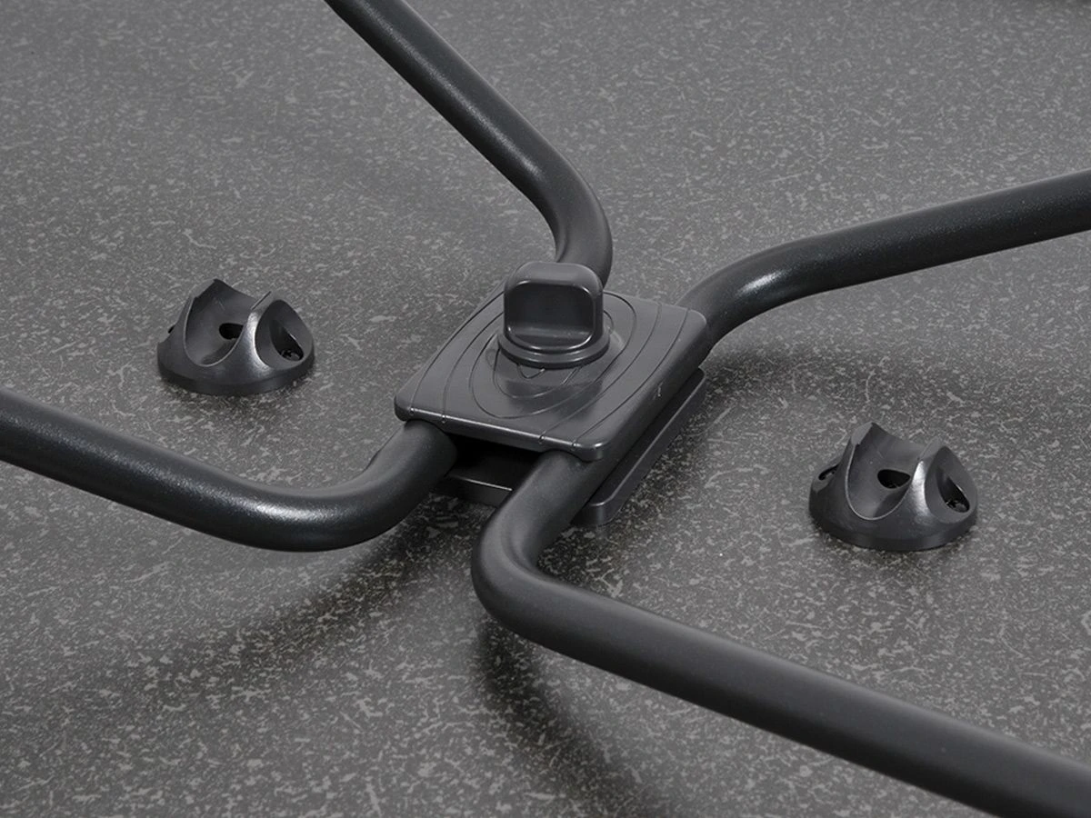 Het tafelblad is water, hitte, UV en krasbestendig, je kunt dus je kooktoestel erop gebruiken of de tafel buiten in de regen of zon laten staan.