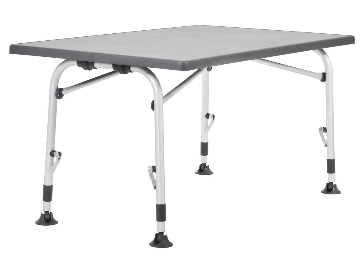 Deze campingtafel is zeer stabiel dankzij het traploos verstelbare frame en de grote voetplaten. Hierdoor is de tafel ook op iedere ondergrond stabiel neer te zetten. De tafelpoot verstelling en sluiting aan de onderzijde zijn vervaardigd uit kunststof om het gewicht zo laag mogelijk te houden.