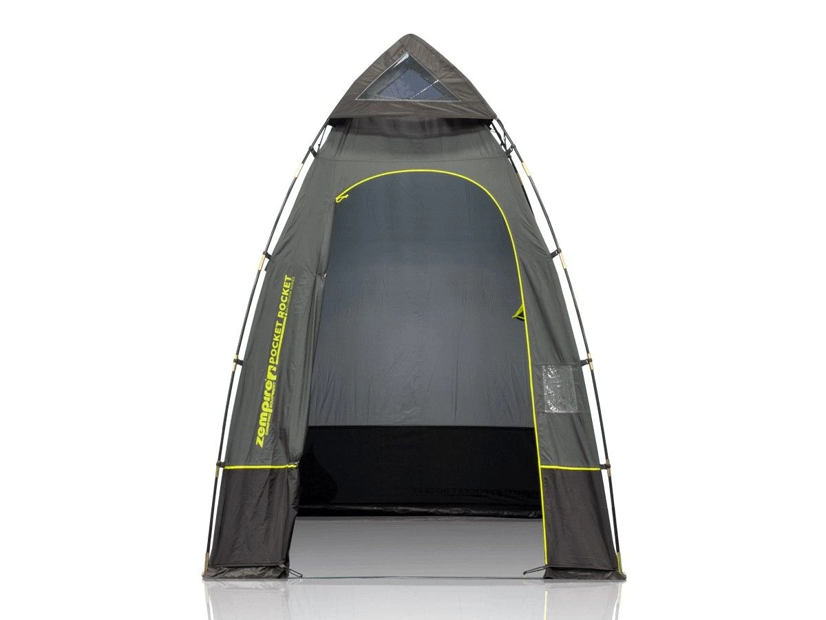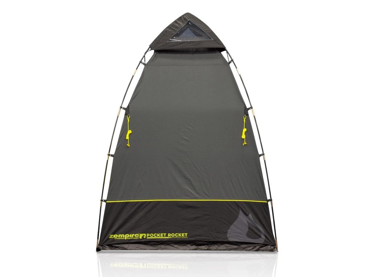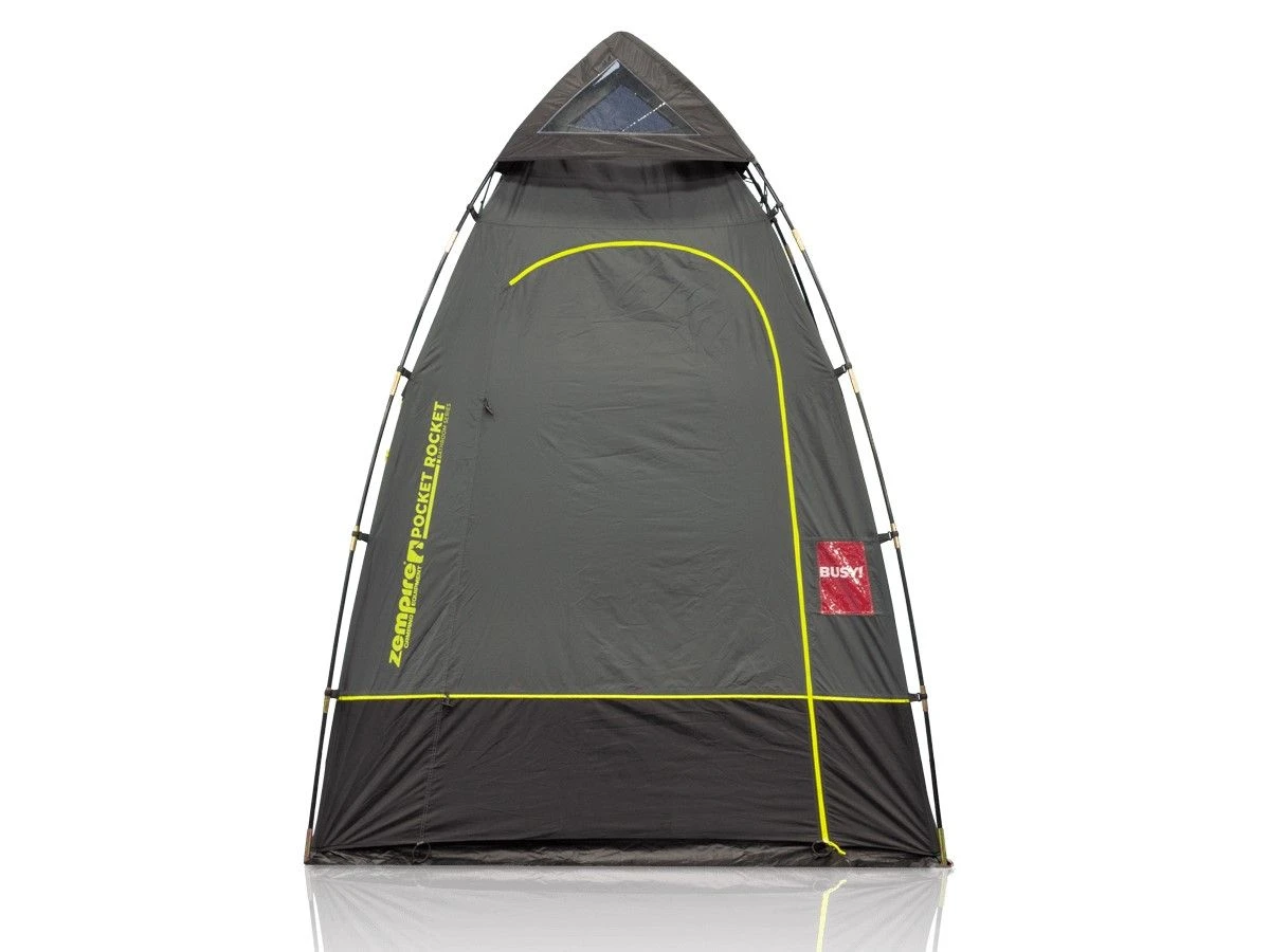 De pocket rocket is een ruime toilet tent met een stevig glaffiber frame.ideaal te gebruiken als toilet, omkleed of douche tent. Door de silver coating heb je geen inkijk of schaduw vorming zodat privacy gegarandeerd is. Het bijgeleverde bezet bordje geeft aan of de tent in gebruik is.Een waterproof gordijn en hangend plancetje zorgen ervoor dat uw spullen droog blijven
